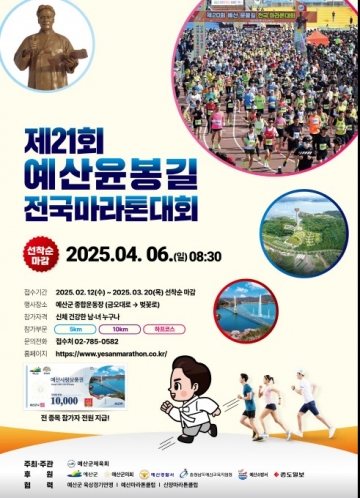 [예산]제21회 예산 윤봉길 전국마라톤대회가 오는 4월 6일 예산읍 일원에서 열린다.