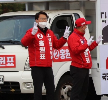 홍원표 국민의힘 후보가 재보궐선거 공식 선거운동 첫날인 25일 거리유세와 각 지역을 돌며 지역민의 표심잡기에 나섰다.